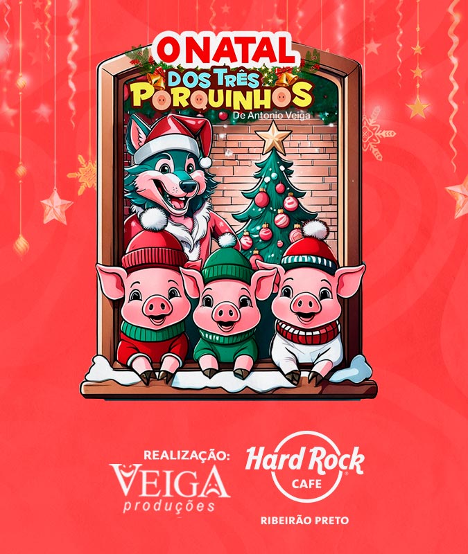 Prepare-se para uma aventura natalina com os Três Porquinhos! Os personagens mais queridos pelas crianças do mundo inteiro!