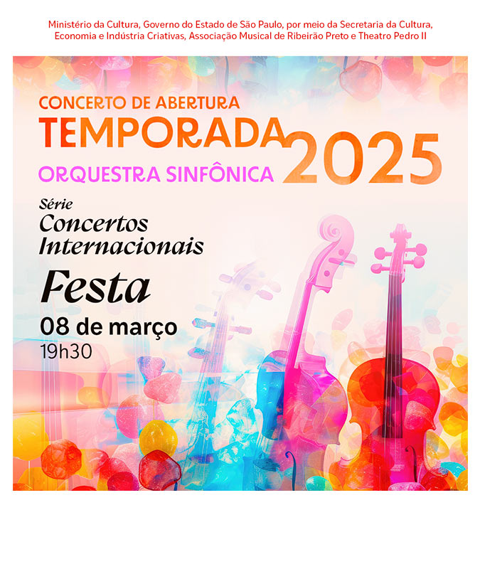 Orquestra Sinfônica de Ribeirão Preto abre a temporada 2025 de concertos e óperas com a série "Concertos Internacionais" sob regência do maestro Reginaldo Nascimento. O programa traz peças variadas com participação do Coro da Sinfônica, como: